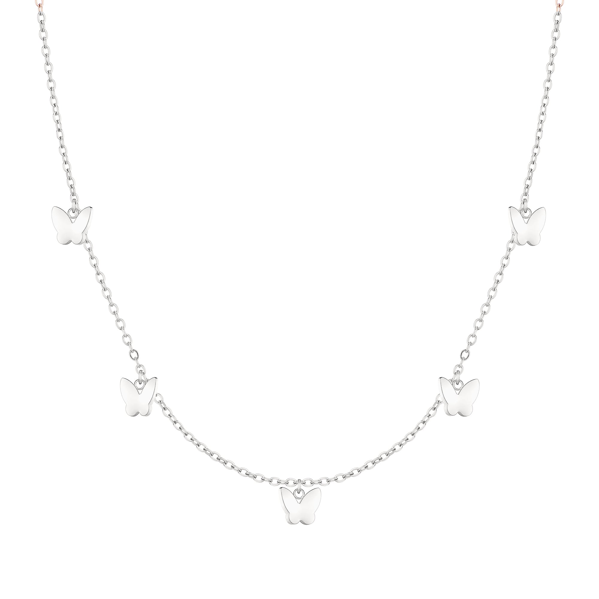 Die filigrane Kette von Cool Time zieht alle Blicke auf sich. Das Spiel aus 5 zarten, verspielten Schmetterlings Anhängern macht das Schmuckstück zu einem schönen Hingucker und Garant für gute Laune. Fröhlich und toll kombinierbar zu den verschiedensten Looks und anderen Schmuckstücken aus der Kollektion.