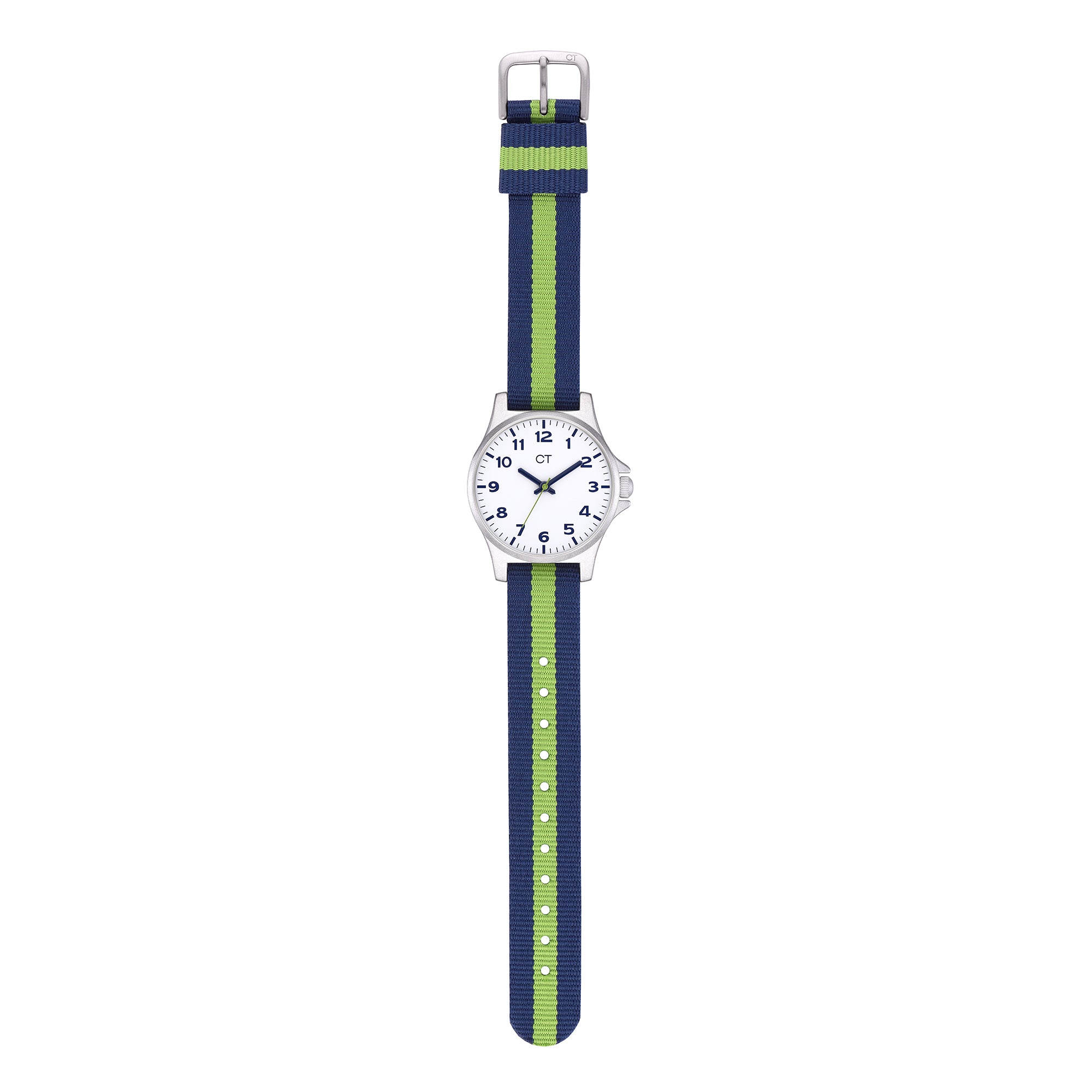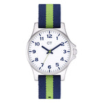 Diese schöne Kinderuhr der Marke Cool Time lässt Kinder-Herzen höher schlagen. Neben dem mit viel Liebe zum Detail entworfenen Streifen-Design wurde bei der Entwicklung auch auf die Qualität besonders viel Wert gelegt. So ist die Kinderuhr mit Textilband schadstoffgeprüft, widerstandsfähig und sehr komfortabel zu tragen. Dank klarer Zahlen und präzisen Minuteneinteilungen wird das Erlernen der Uhrzeit zum Kinderspiel. Ein zuverlässiges Quarzwerk und kratzunempfindliches Mineralglas runden die Kinderuhr optimal ab. Verpackt im coolen Mäppchen ist die Uhr ein ideales Geschenk und sorgt auch in der Schule für "Cool Time".